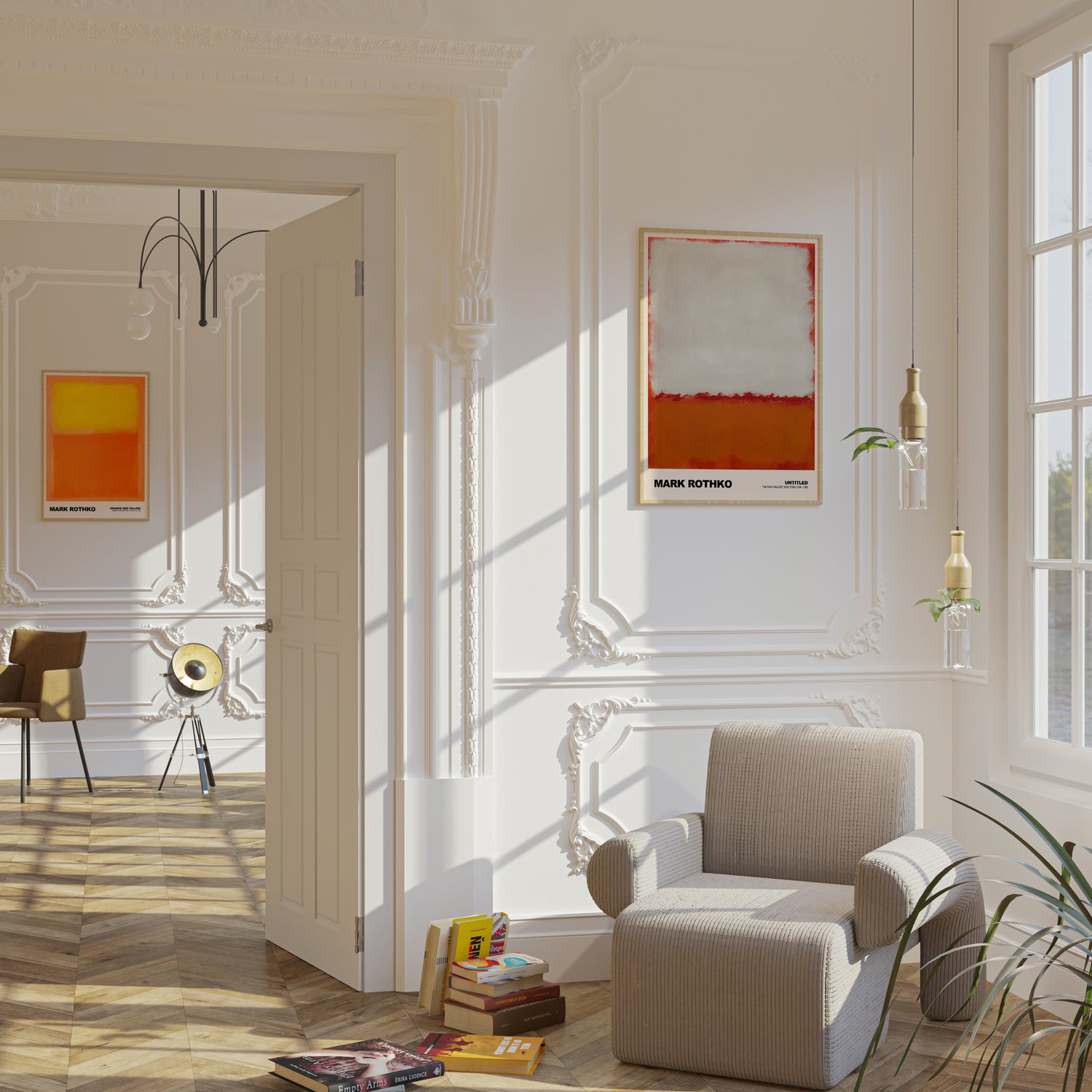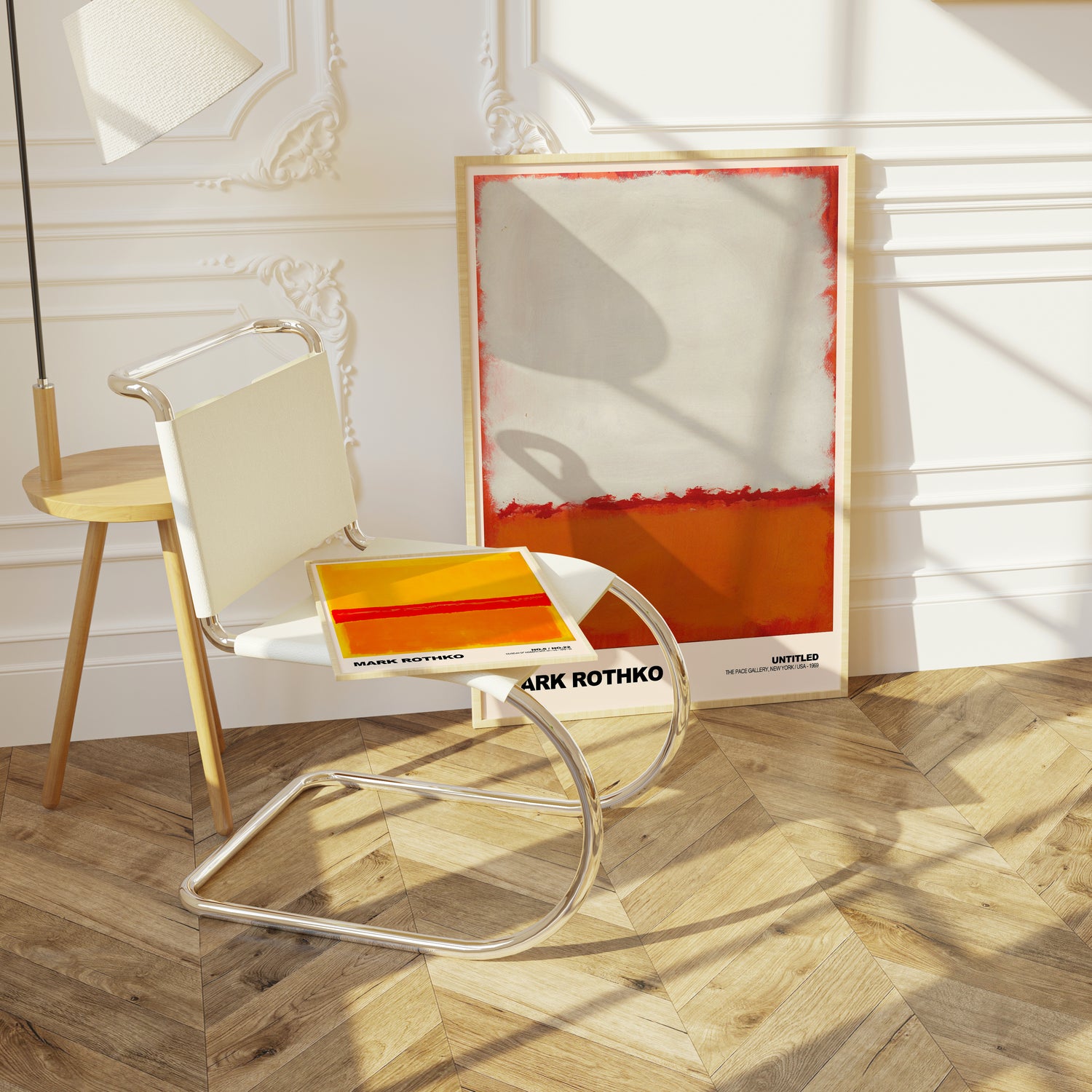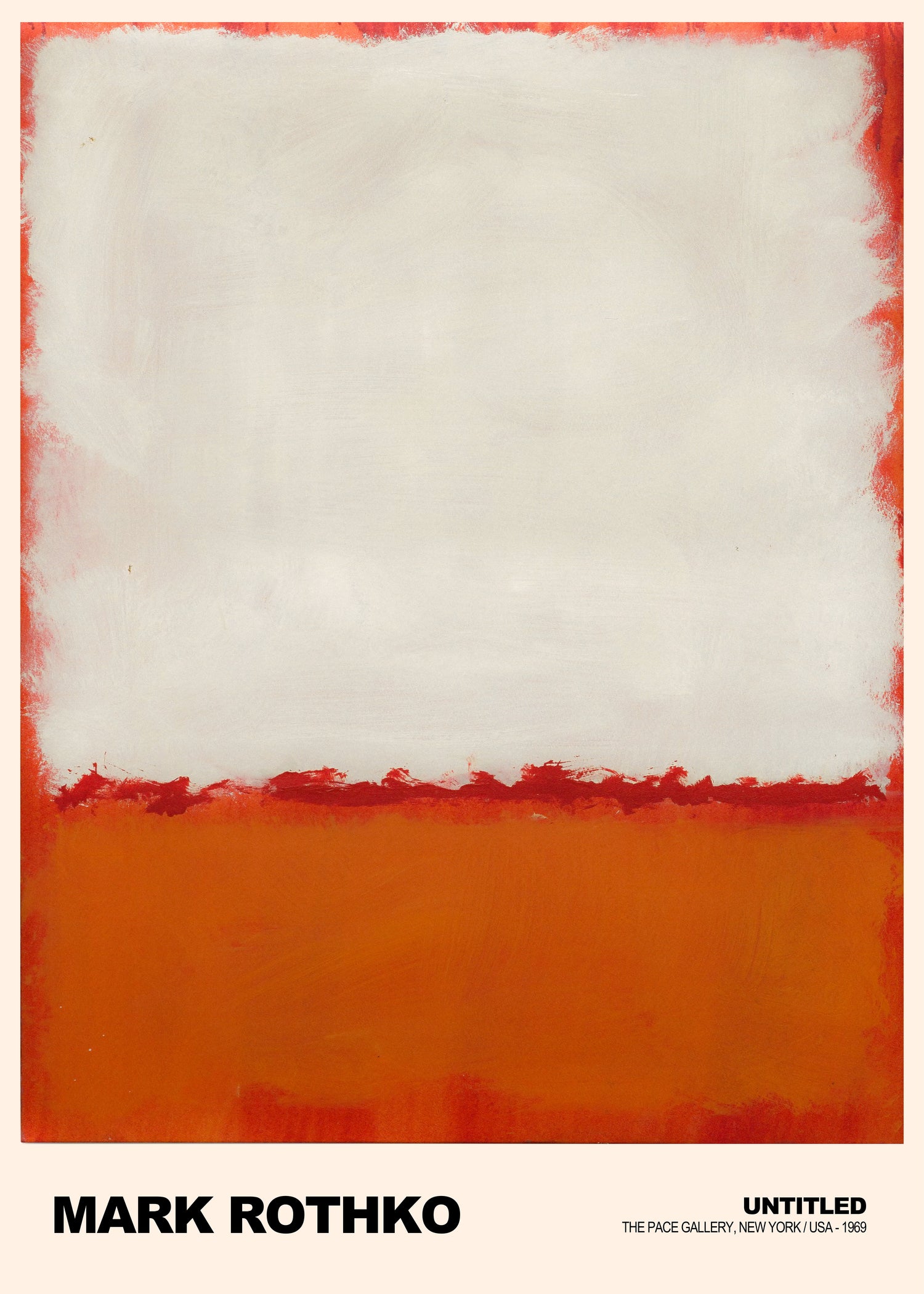 Deze zorgvuldig gecreëerde balans tussen kleuren nodigt de kijker uit tot reflectie en verrijkt elke ruimte met een unieke sfeer van dynamiek en rust. "Untitled - Orangered and White" is een onmisbaar stuk voor kunstliefhebbers en een prachtige toevoeging aan elk modern interieur, getuigend van Rothko's meesterschap in het vangen van emotie door kleur. Laat dit iconische werk uw dagelijkse omgeving transformeren, een blijvende bron van inspiratie en bewondering.